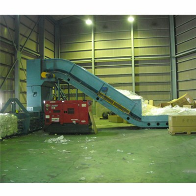 4、機(jī)械下料口采用自動(dòng)壓料裝置,將打包物料壓縮到打包室中。